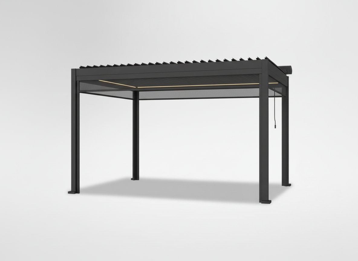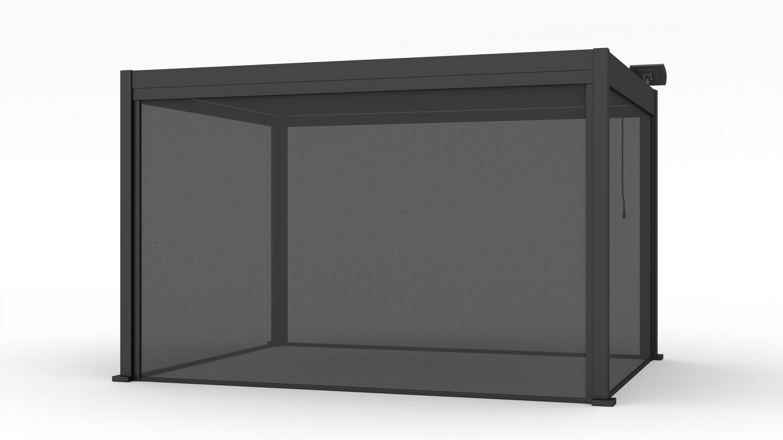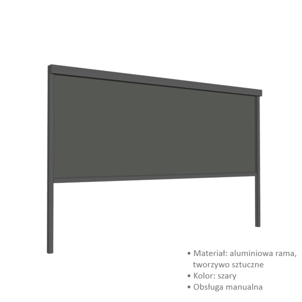 Sistem ZIP poskrbi za stabilno vodenje tkanine. Ročno upravljanje omogoča preprosto vsakodnevno uporabo. Tkanina textilene sunprey je namenjena zunanji uporabi in pomaga pri omejevanju segrevanja prostora. Roleta je prilagojena aluminijasti pergoli širine 4 m.
