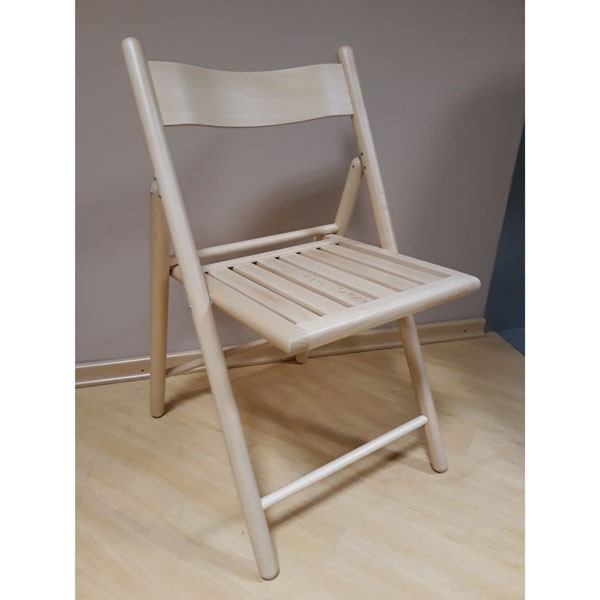Zložljiv stol FOLDING je lesen stolček, ki se enostavno zloži. Primeren je za domačo uporabo, lahko pa tudi za razne dvorane za različne prireditve.