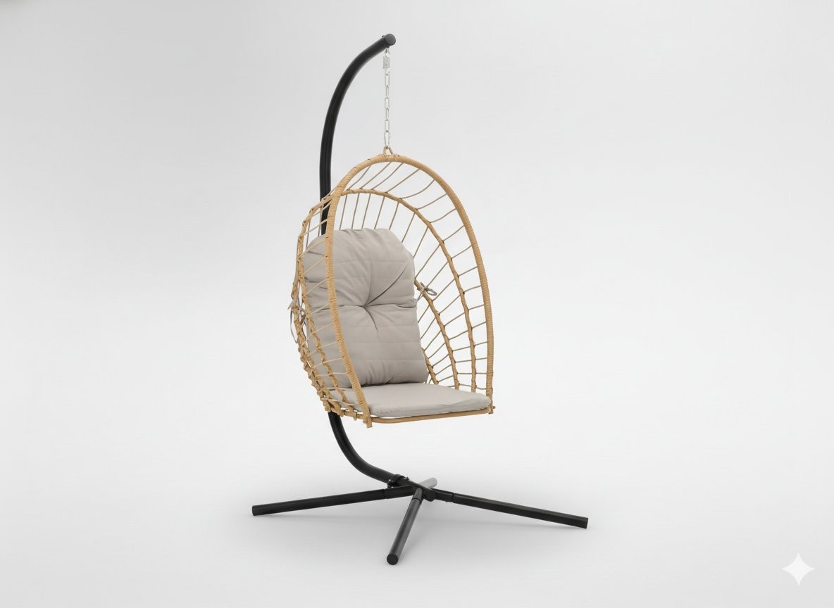 Zložljiv viseči fotelj Eris (rjav/siv) je udoben kos za sproščeno sedenje in prijeten videz ambienta. Kombinacija barv črna, rjava in siva ustvarja usklajen videz izdelka. Izdelava iz materiala jeklo dopolnjuje zasnovo izdelka.