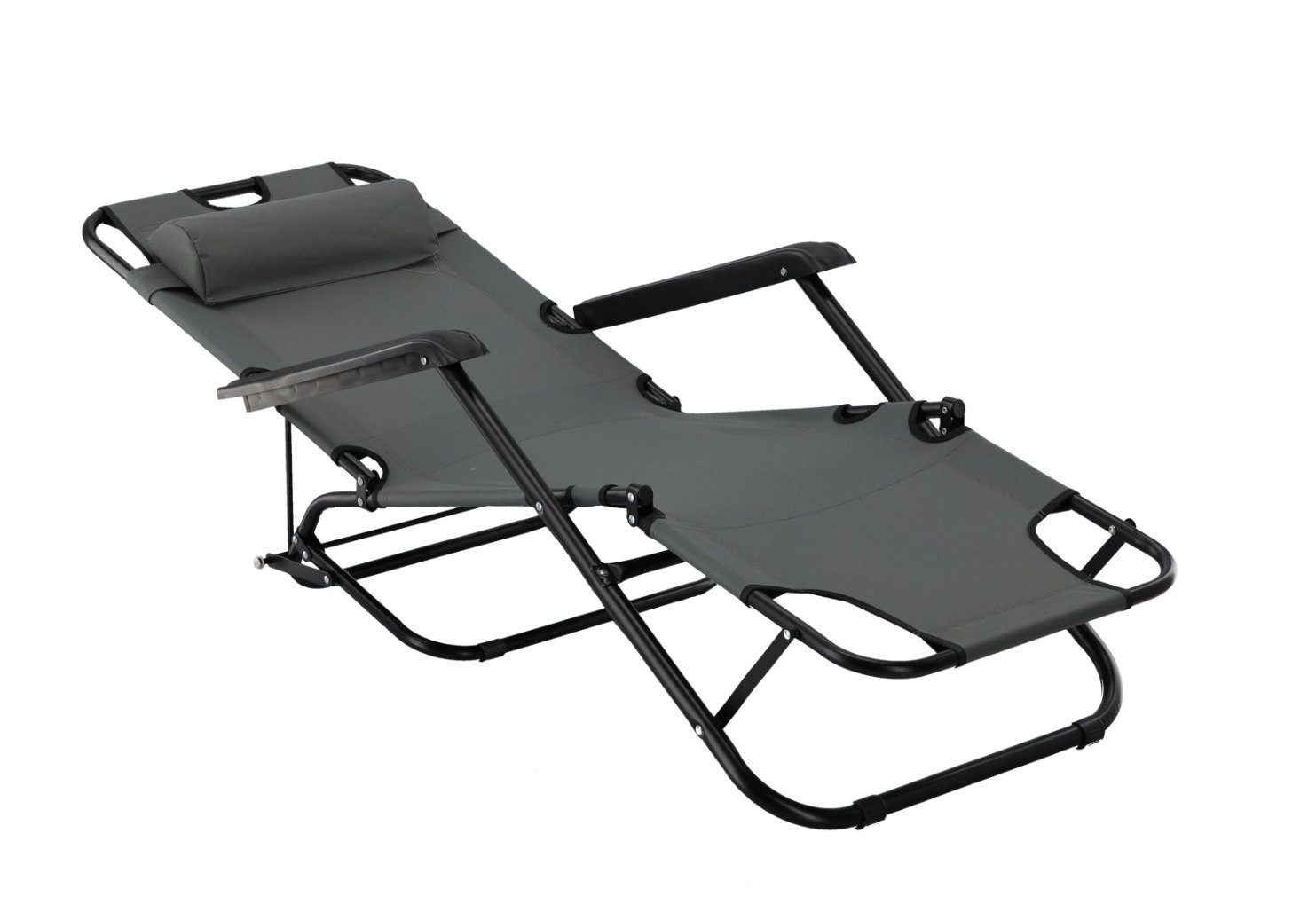 Zložljiv vrtni ležalnik Bilek z vzglavnikom (siv) je praktična izbira za počitek, sončenje ali sproščanje na prostem. Siva barva deluje umirjeno in je preprosta za kombiniranje.