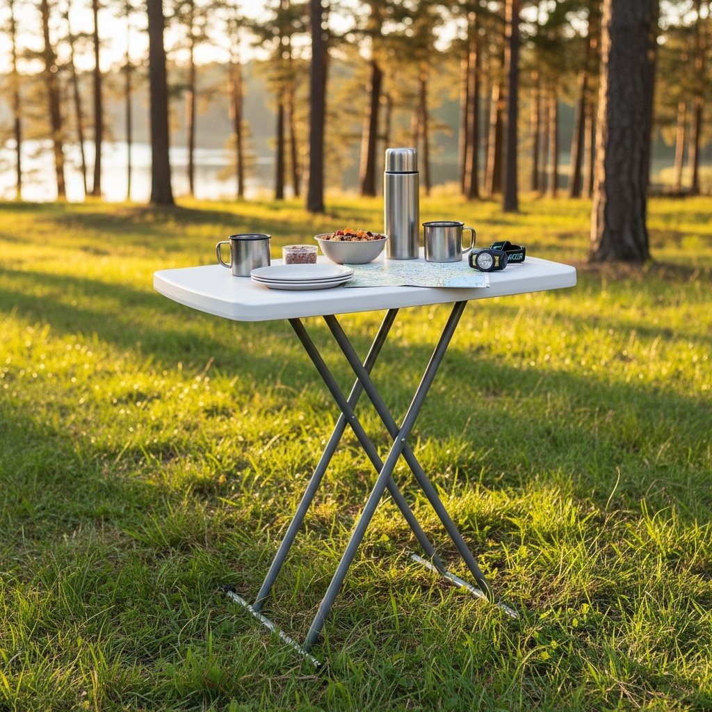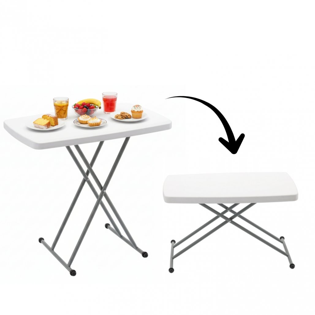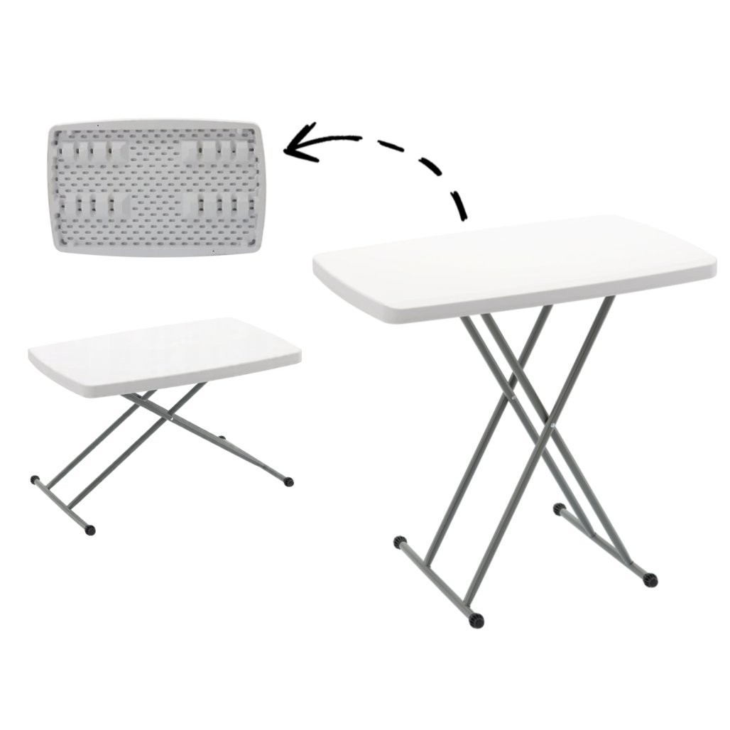Zložljiva kamping miza Kasil z nastavljivo višino 76 (5 x 49,5 cm) je uporabna miza z jasnimi linijami in vsestransko namembnostjo. Bela barva prostor vizualno osveži in deluje zračno.