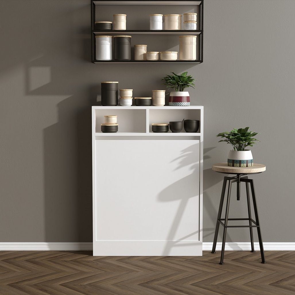 Ta zložljiva mizica je s svojo enobarvnostjo in modernim konceptom novosti popoln dodatek za vsak prostor. Ne glede na to, ali potrebujete dodatno shrambo v spalnici, priročen delovni prostor v domači pisarni ali eleganten razstavni prostor v dnevni sobi, ta miza vas bo prepričala.